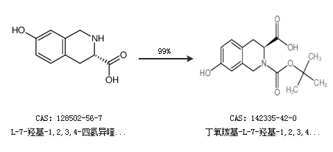 1.通过L-7-羟基-1,2,3,4-四氢异喹啉-3-羧酸合成丁氧羰基-L-7-羟基-1,2,3,4-四氢化异喹啉-3-羧酸,收率约99%;