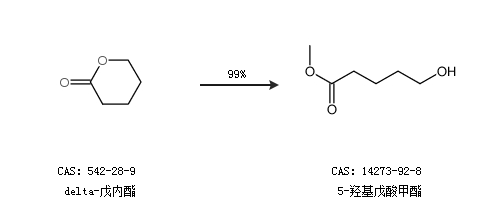 1.通过delta-戊内酯合成5-羟基戊酸甲酯,收率约99%;
