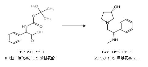 1.通过N-(叔丁氧羰基)-L-2-苯甘氨酸合成(2S,3s)-1-(2-甲基氨基-2-苯基-乙基)-吡咯烷-3-醇