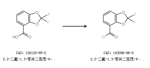 中文别名 2,2-二氟-1,3-苯并二氧杂环戊烯-4-羰酰氯;2,2-二氟-1,3-苯并二噁茂-4-甲酰氯;