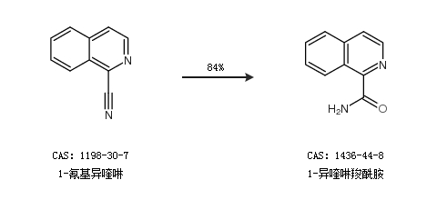 1.通过1-氰基异喹啉合成1-异喹啉羧酰胺,收率约84%;