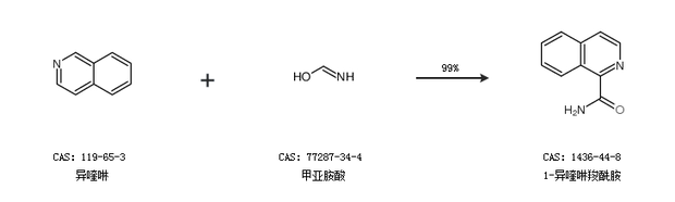 2.通过异喹啉和甲亚胺酸合成1-异喹啉羧酰胺,收率约99%;