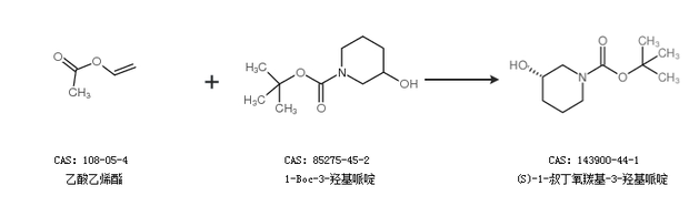 1.通过乙酸乙烯酯和1-Boc-3-羟基哌啶合成(S)-1-叔丁氧羰基-3-羟基哌啶