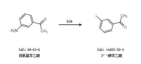 1.通过间氨基苯乙酮合成3′-碘苯乙酮,收率约63%;