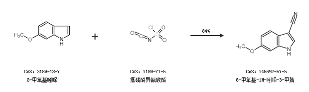 1.通过6-甲氧基吲哚和氯磺酰异氰酸酯合成6-甲氧基-1H-吲哚-3-甲腈,收率约84%;