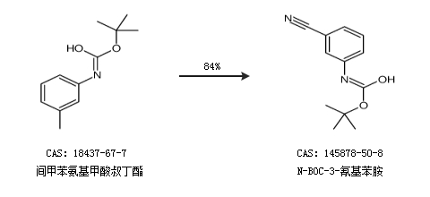 2.通过间甲苯氨基甲酸叔丁酯合成N-BOC-3-氰基苯胺,收率约84%;