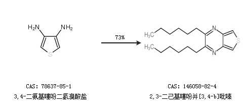 1.通过3,4-二氨基噻吩二氢溴酸盐合成2,3-二己基噻吩并[3,4-b]吡嗪,收率约73%;