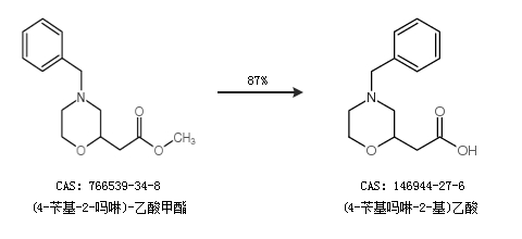 1.通过(4-苄基-2-吗啉)-乙酸甲酯合成(4-苄基吗啉-2-基)乙酸,收率约87%;