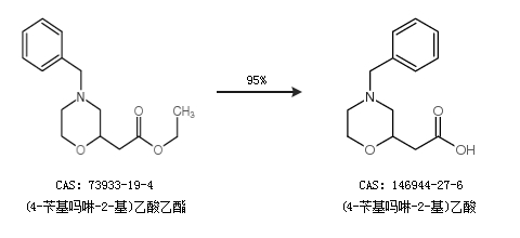 2.通过(4-苄基吗啉-2-基)乙酸乙酯合成(4-苄基吗啉-2-基)乙酸,收率约95%;