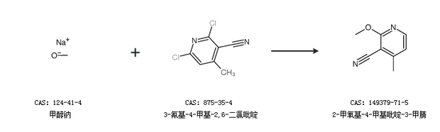 1.通过甲醇钠和3-氰基-4-甲基-2,6-二氯吡啶合成2-甲氧基-4-甲基吡啶-3-甲腈