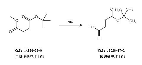 1.通过甲基琥珀酸叔丁酯合成琥珀酸单叔丁酯,收率约70%;