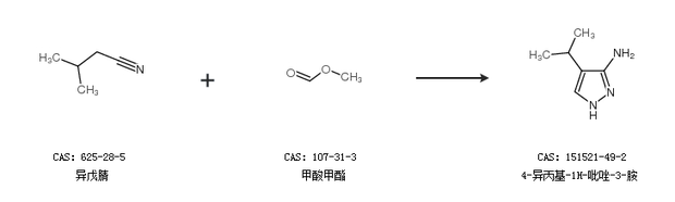 1.通过异戊腈和甲酸甲酯合成4-异丙基-1H-吡唑-3-胺