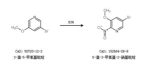 1.通过3-溴-5-甲氧基吡啶合成5-溴-3-甲氧基-2-硝基吡啶,收率约83%;