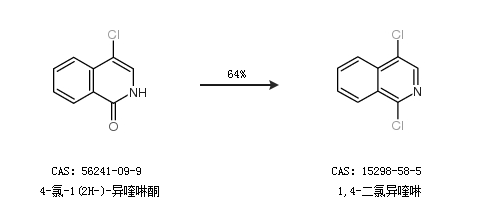 1.通过4-氯-1(2H-)-异喹啉酮合成1,4-二氯异喹啉,收率约64%;