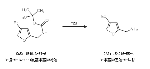 1.通过3-溴-5-(n-boc)氨基甲基异噁唑合成3-甲基异恶唑-5-甲胺,收率约72%;