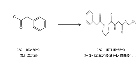 1.通过氯化苯乙酰合成N-(1-(苯基乙酰基)-L-脯氨酰)甘氨酸乙酯
