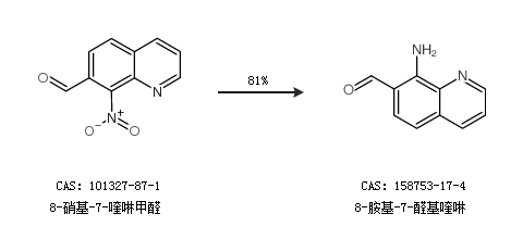 1.通过8-硝基-7-喹啉甲醛合成8-胺基-7-醛基喹啉,收率约81%;