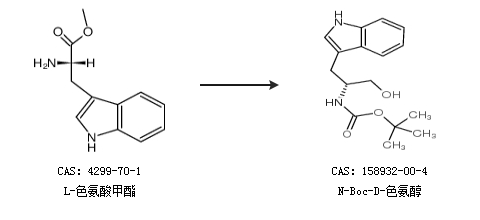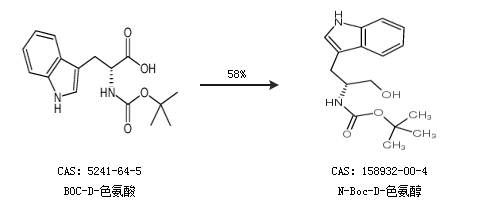 1.通过BOC-D-色氨酸合成N-Boc-D-色氨醇,收率约58%;