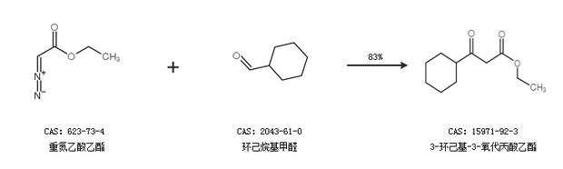 1.通过重氮乙酸乙酯和环己烷基甲醛合成3-环己基-3-氧代丙酸乙酯,收率约83%;
