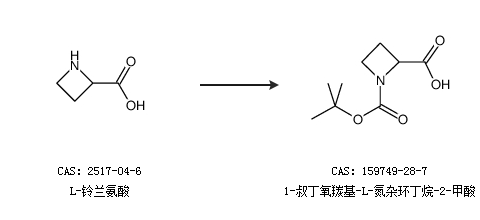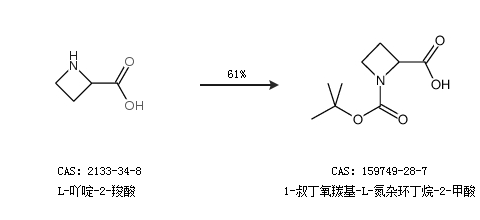 1.通过L-吖啶-2-羧酸合成1-叔丁氧羰基-L-氮杂环丁烷-2-甲酸,收率约61%;