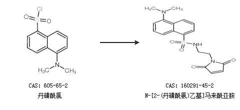 英文别名 5-(dimethylamino)-N-[2-(2,5-dioxopyrrol-1-yl)ethyl]naphthalene-1-sulfonamide;N-(2-Maleimidoethyl)-5-dimethylamino-1-naphthalenesulfonamide N-(2-Maleimidoethyl)dansylamide;