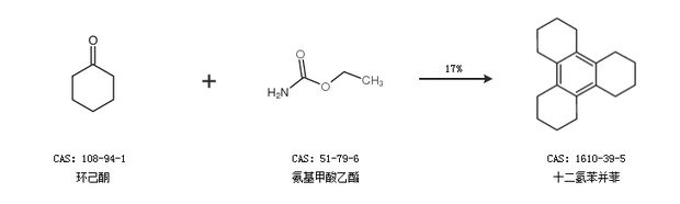 2.通过环己酮和氨基甲酸乙酯合成十二氢苯并菲,收率约17%;