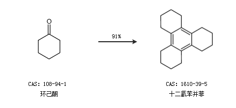 1.通过环己酮合成十二氢苯并菲,收率约91%;