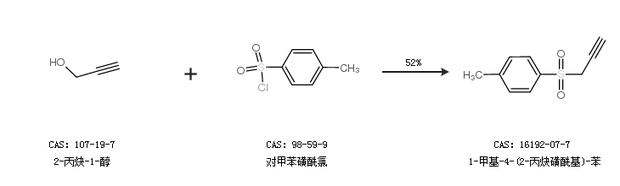 1.通过2-丙炔-1-醇和对甲苯磺酰氯合成1-甲基-4-(2-丙炔磺酰基)-苯,收率约52%;