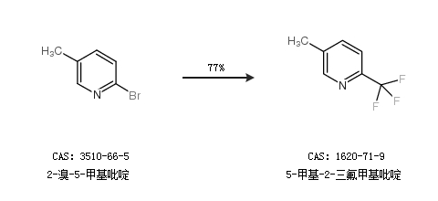 1.通过2-溴-5-甲基吡啶合成5-甲基-2-三氟甲基吡啶,收率约77%;