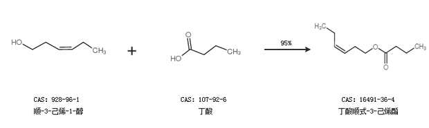 2.通过顺-3-己烯-1-醇和丁酸合成丁酸顺式-3-己烯酯,收率约95%;