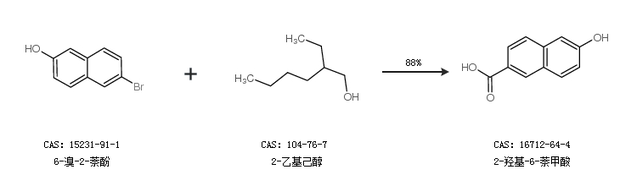 1.通过6-溴-2-萘酚和2-乙基己醇合成2-羟基-6-萘甲酸,收率约88%;