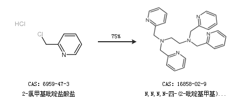 2.通过2-氯甲基吡啶盐酸盐合成N,N,N,N-四-(2-吡啶基甲基)乙二胺,收率约75%;