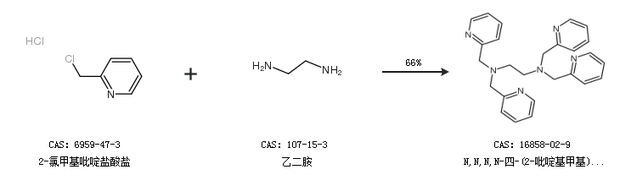 1.通过2-氯甲基吡啶盐酸盐和乙二胺合成N,N,N,N-四-(2-吡啶基甲基)乙二胺,收率约66%;