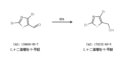 1.通过2,4-二溴噻唑-5-甲醛合成2,4-二溴噻唑-5-甲醇,收率约95%;