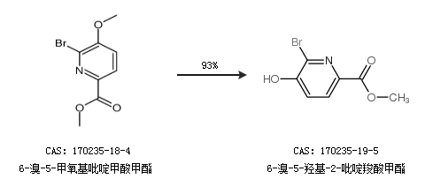 1.通过6-溴-5-甲氧基吡啶甲酸甲酯合成6-溴-5-羟基-2-吡啶羧酸甲酯,收率约93%;