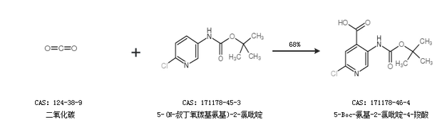 1.通过二氧化碳和5-(N-叔丁氧羰基氨基)-2-氯吡啶合成5-Boc-氨基-2-氯吡啶-4-羧酸,收率约68%;