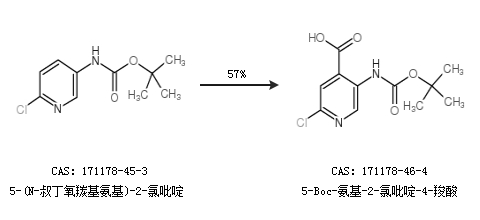 2.通过5-(N-叔丁氧羰基氨基)-2-氯吡啶合成5-Boc-氨基-2-氯吡啶-4-羧酸,收率约57%;