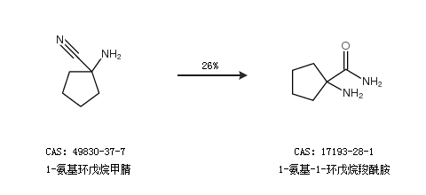 1.通过1-氨基环戊烷甲腈合成1-氨基-1-环戊烷羧酰胺,收率约26%;