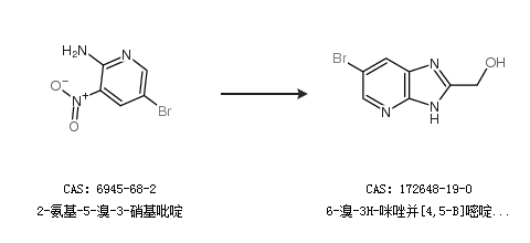1.通过2-氨基-5-溴-3-硝基吡啶合成6-溴-3H-咪唑并[4,5-B]嘧啶-2甲醇