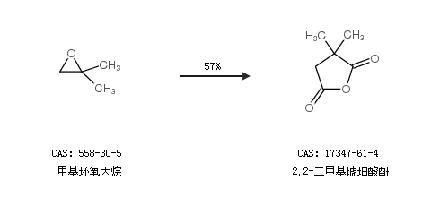 1.通过甲基环氧丙烷合成2,2-二甲基琥珀酸酐,收率约57%;