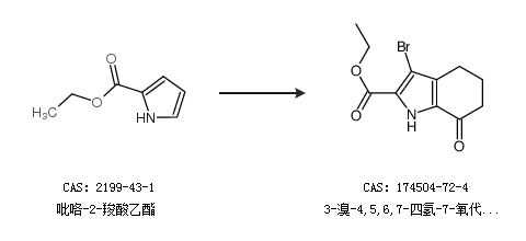 1.通过吡咯-2-羧酸乙酯合成3-溴-4,5,6,7-四氢-7-氧代-1H-吲哚-2-羧酸乙酯