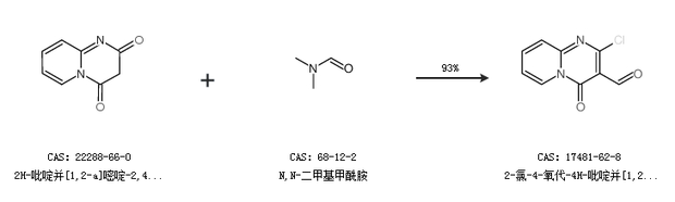 1.通过2H-吡啶并[1,2-a]嘧啶-2,4(3H)-二酮和N,N-二甲基甲酰胺合成2-氯-4-氧代-4H-吡啶并[1,2-a]嘧啶-3-甲醛,收率约93%;