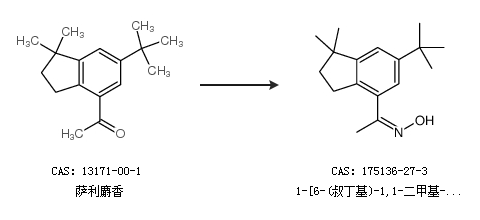 1.通过萨利麝香合成1-[6-(叔丁基)-1,1-二甲基-2,3-二氢-1H-茚-4-基]-1-乙酮肟