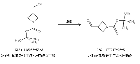 1.通过3-羟甲基氮杂环丁烷-1-羧酸叔丁酯合成1-Boc-氮杂环丁二烯-3-甲醛,收率约26%;