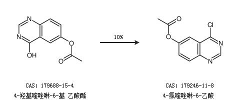 1.通过4-羟基喹唑啉-6-基 乙酸酯合成4-氯喹唑啉-6-乙酸,收率约10%;