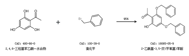 2.通过2,4,6-三羟基苯乙酮一水合物和溴化苄合成2-乙酰基-3,5-双(苄氧基)苯酚,收率约95%;