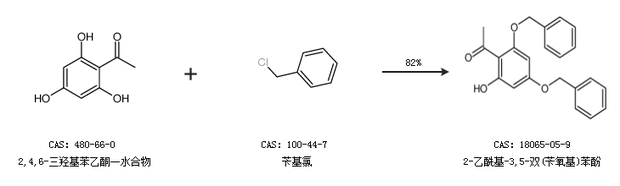 1.通过2,4,6-三羟基苯乙酮一水合物和苄基氯合成2-乙酰基-3,5-双(苄氧基)苯酚,收率约82%;