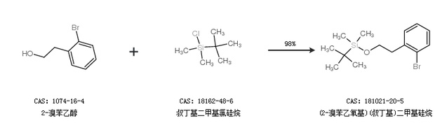 1.通过2-溴苯乙醇和叔丁基二甲基氯硅烷合成(2-溴苯乙氧基)(叔丁基)二甲基硅烷,收率约98%;