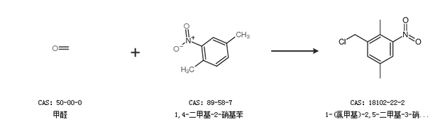 1.通过甲醛和1,4-二甲基-2-硝基苯合成1-(氯甲基)-2,5-二甲基-3-硝基苯