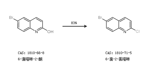 1.通过6-溴喹啉-2-酮合成6-溴-2-氯喹啉,收率约83%;